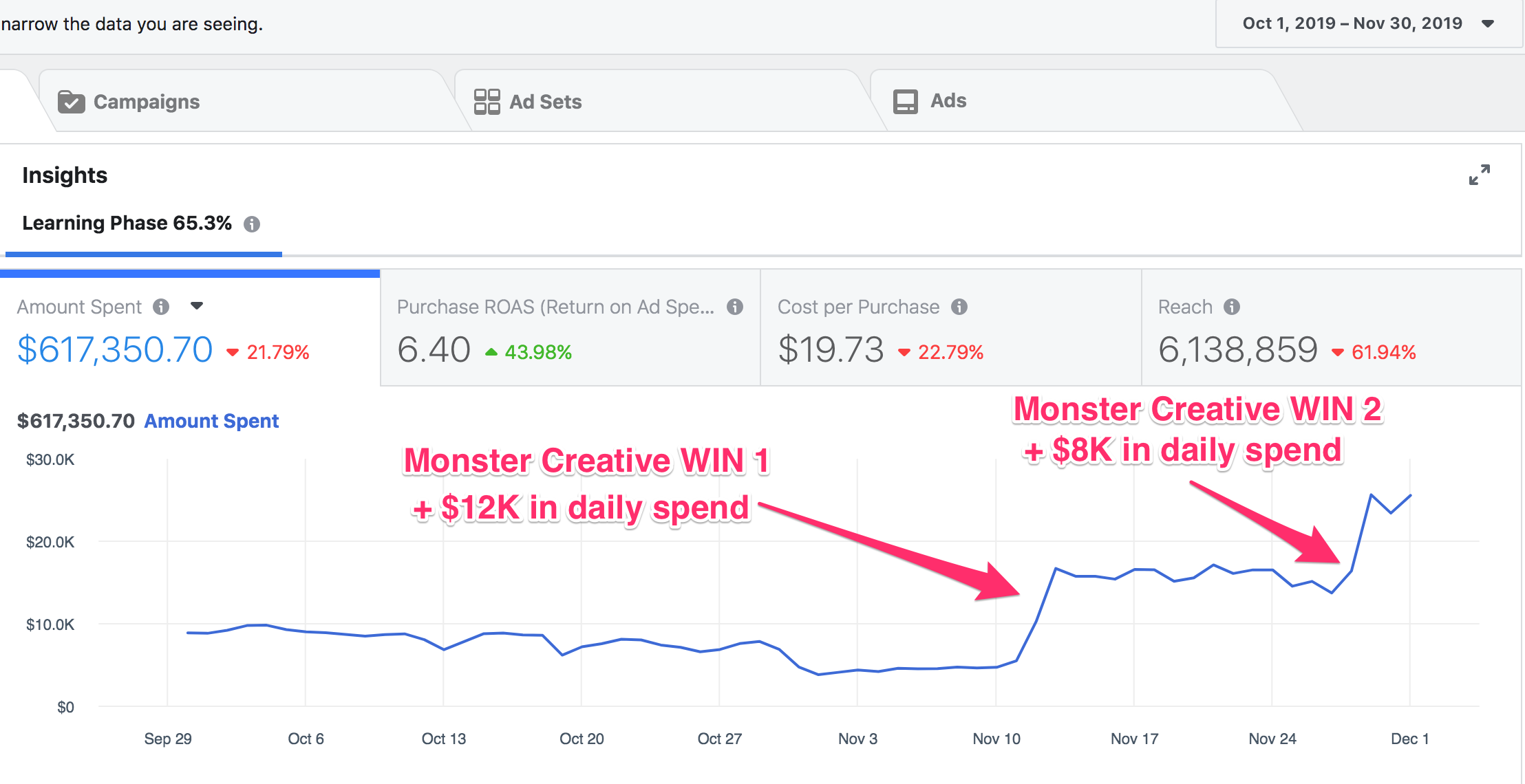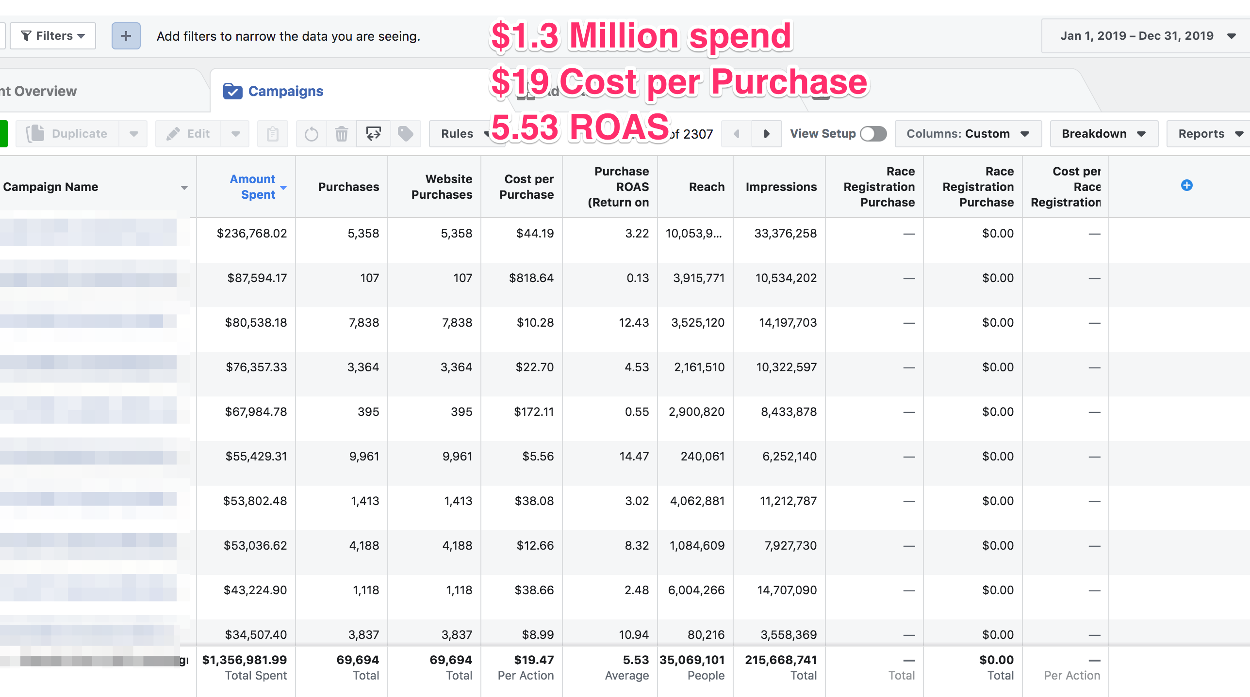 1.3 Million Spend / $19 CPA / 5.53x ROAS